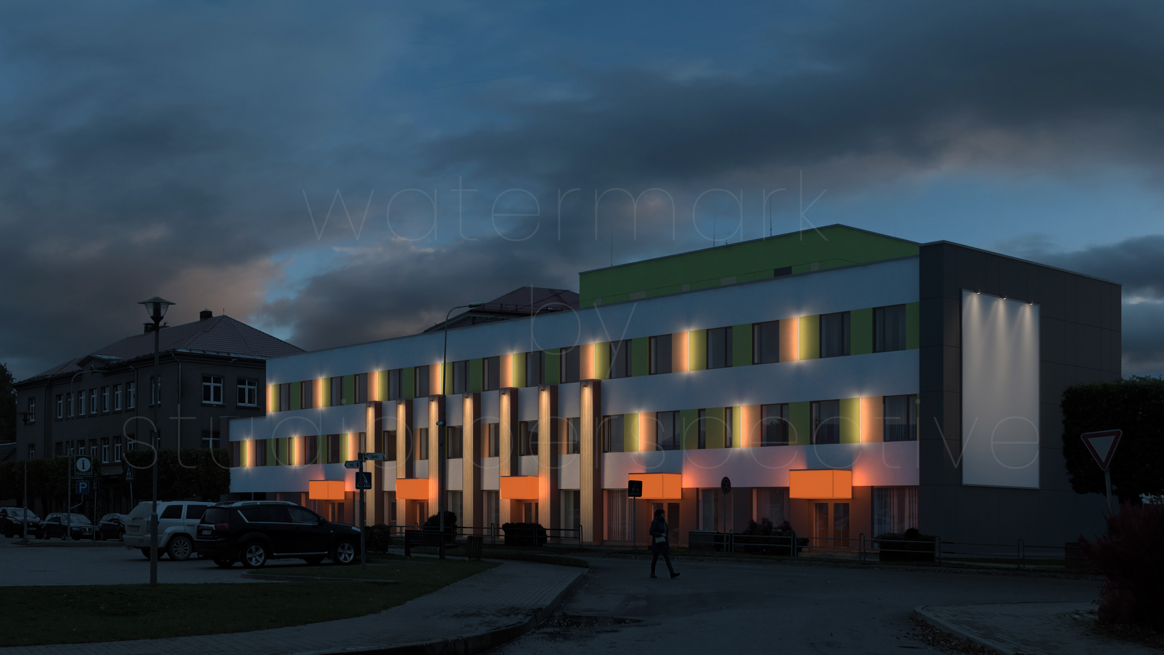 Tautas nama priekšlaukuma atjaunināšana ar 20 autostāvvietām, ietvēm, apgaismojumu, uzbrauktuvi vides pieejamībai pie ieejas ēkā un vides objektu - BĀKU. Brīvajā teritorijā zālājā izveidoti telpiski viļņi sasaucas ar piejūras kontekstu un izstaro no tautas nama, kuram ir gaismas nesēja/starotāja funkcija vietējai sabiedrībai, savukārt bāka ļauj atrast pareizo ceļu,..